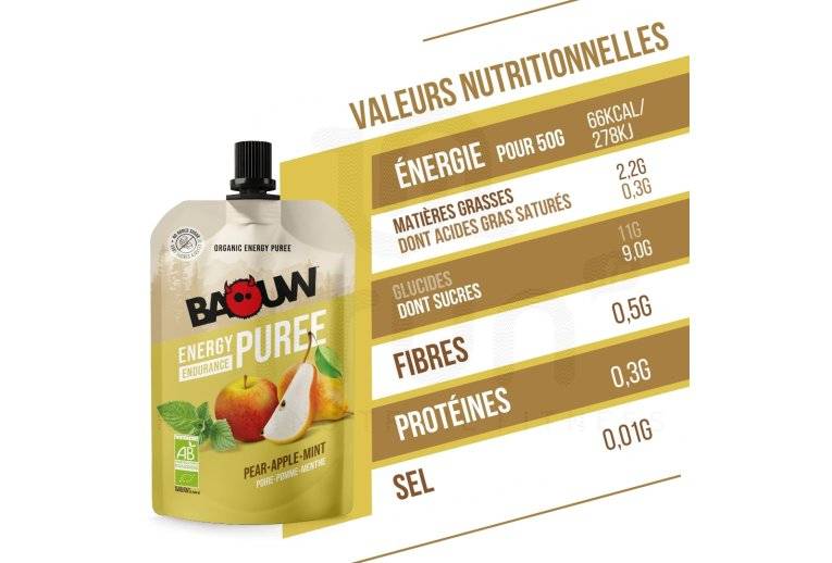 Baouw - Purée nutritionnelle bio - Poire - Pomme - Menthe