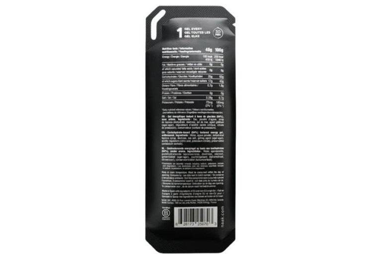 Gel énergétique texturé à base de glucides (64%), sans arôme. Eau, poudre d'agave, sirop de tapioca déshydraté, dextrose, sel de mer, agent gélifiant (agar-agar), correcteurs d'acidité (potassium, citrate, acide-citrique, potassium sorbate).