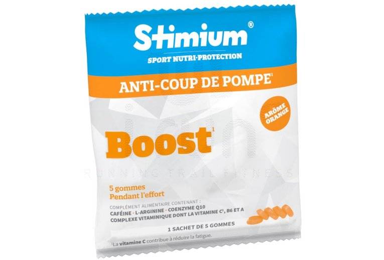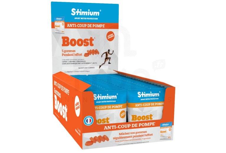 Le pack Stimium de 40 sachets de la gomme à mâcher Boost goût orange apportent l'énergie dont vos muscles ont besoin pour franchir la ligne d'arrivée avec succès.