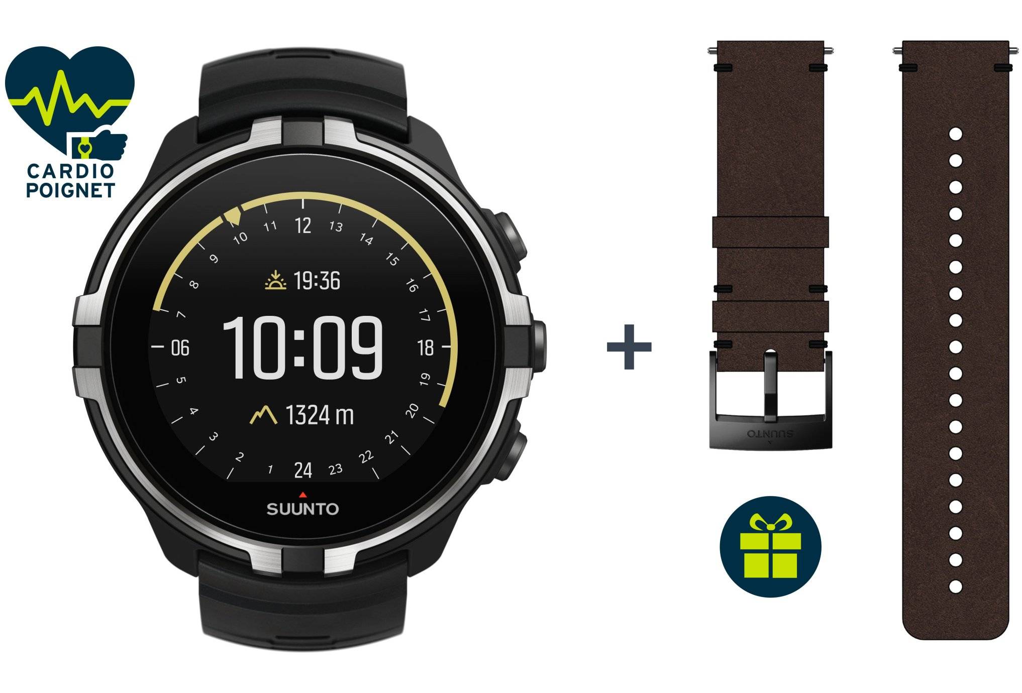 Pour une personnalisation au grès de vos envies, profitez du bracelet Suunto Urban 2 Cuir 24 mm offert dans votre pack Suunto !