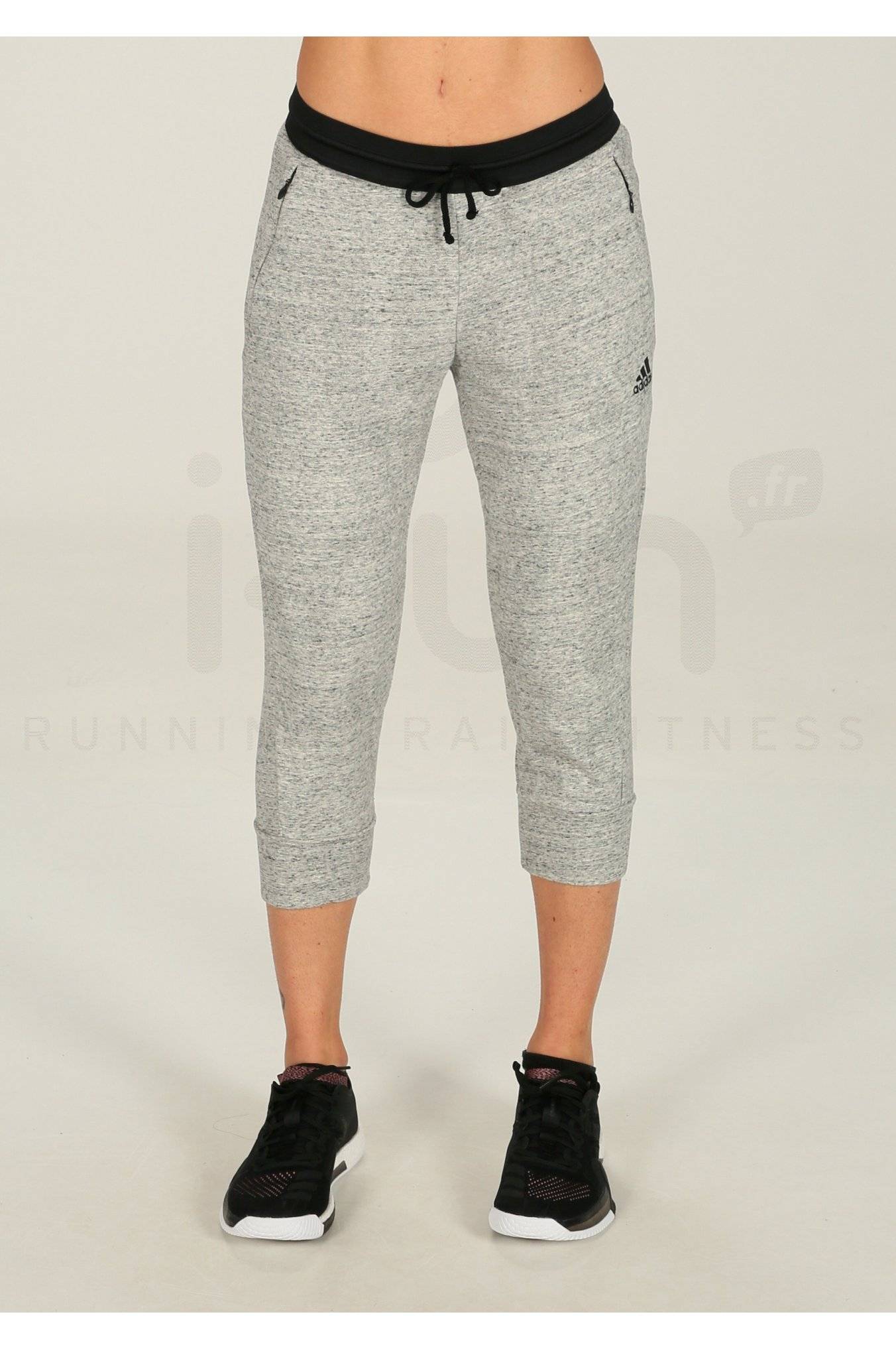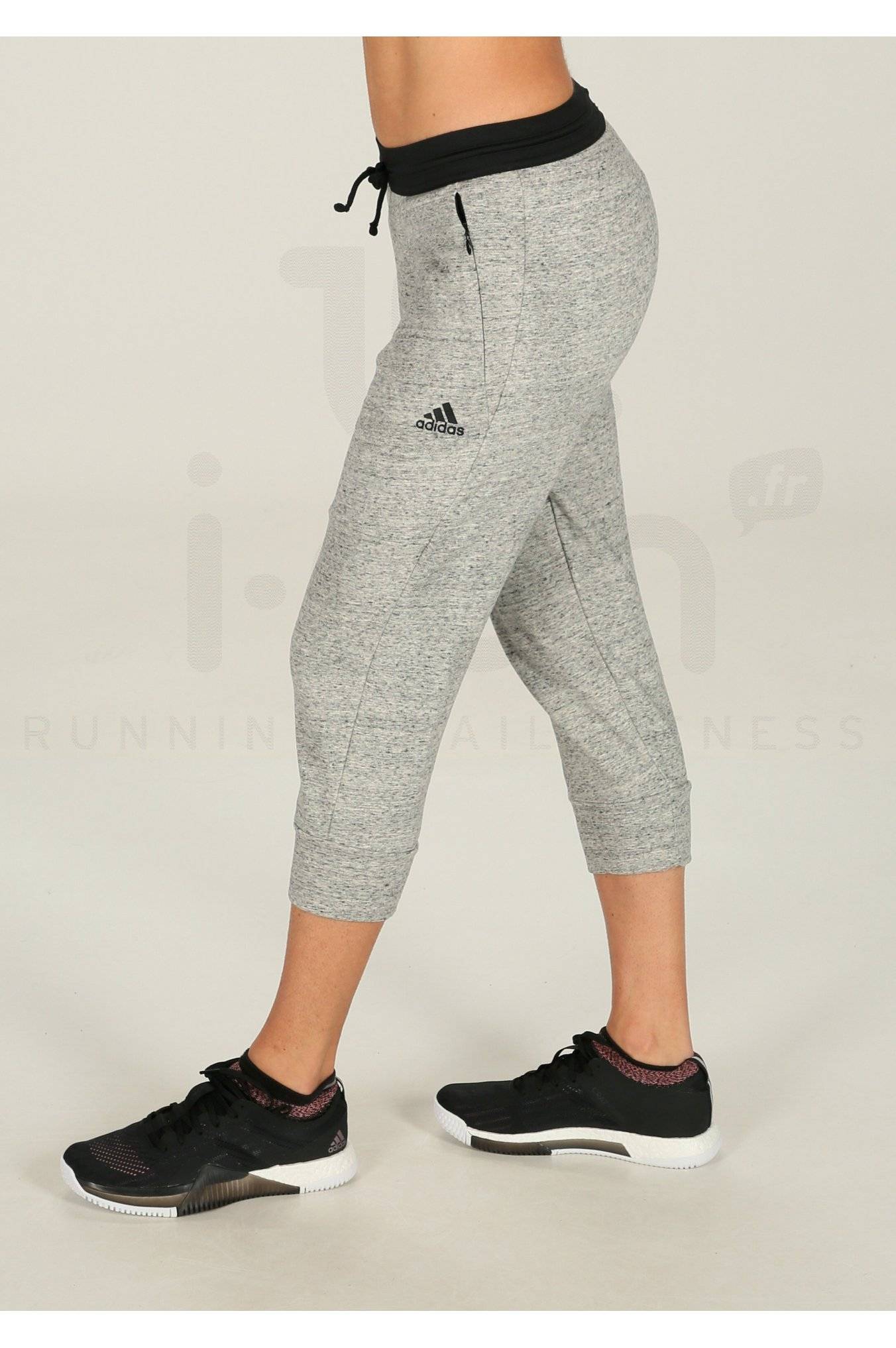Tout doux et tout chaud, le pantalon 3/4 adidas Molleton de Coton gris chiné et noir pour femme (Collection Automne/Hiver) est idéal pour vous rendre à votre salle de sport ou lors de vos activités quotidiennes.