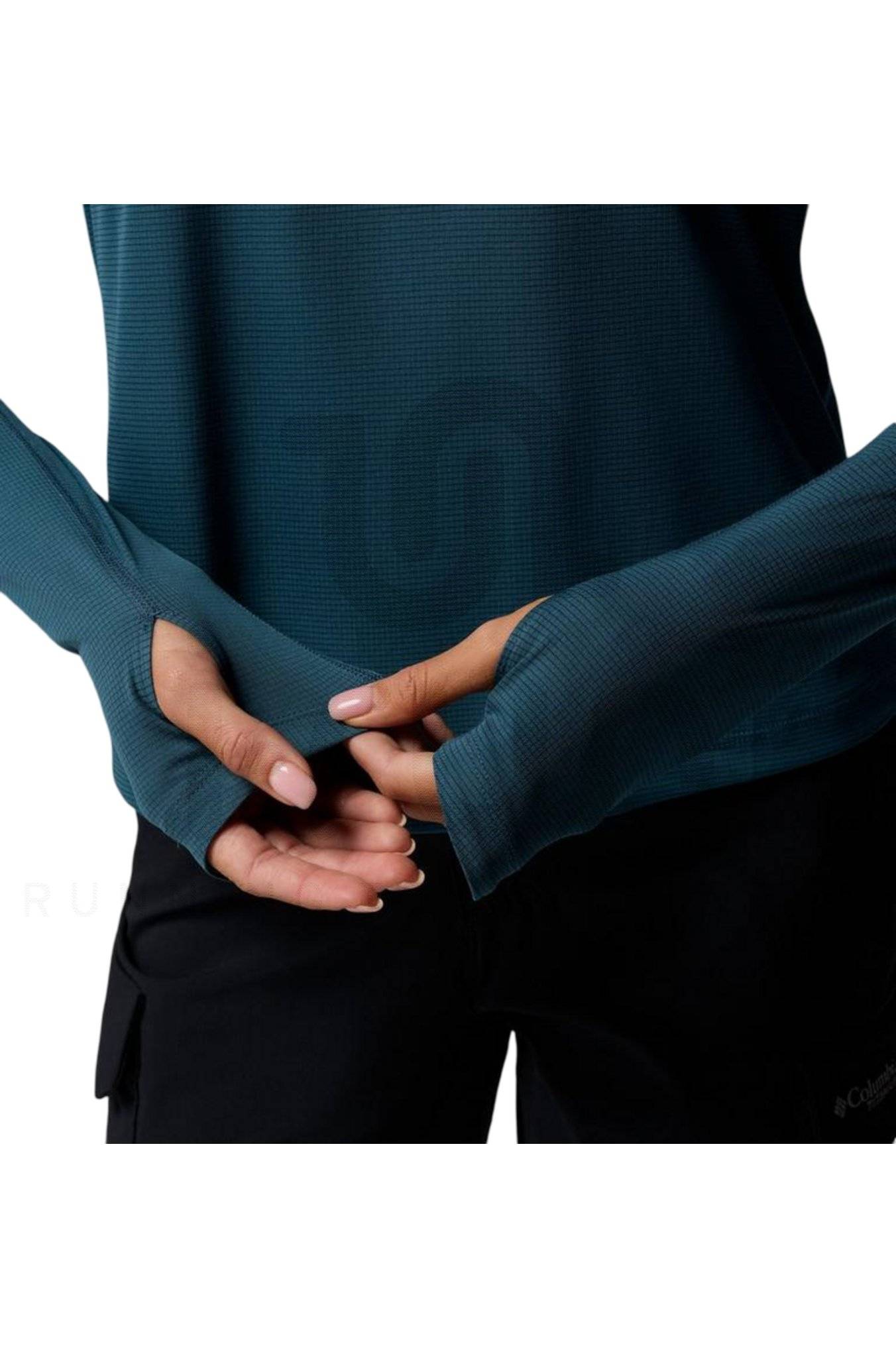 Vous êtes idéalement isolé du froid grâce aux passes-pouce et au col montant. Le demi-zip vous permet de moduler la ventilation selon vos besoins.