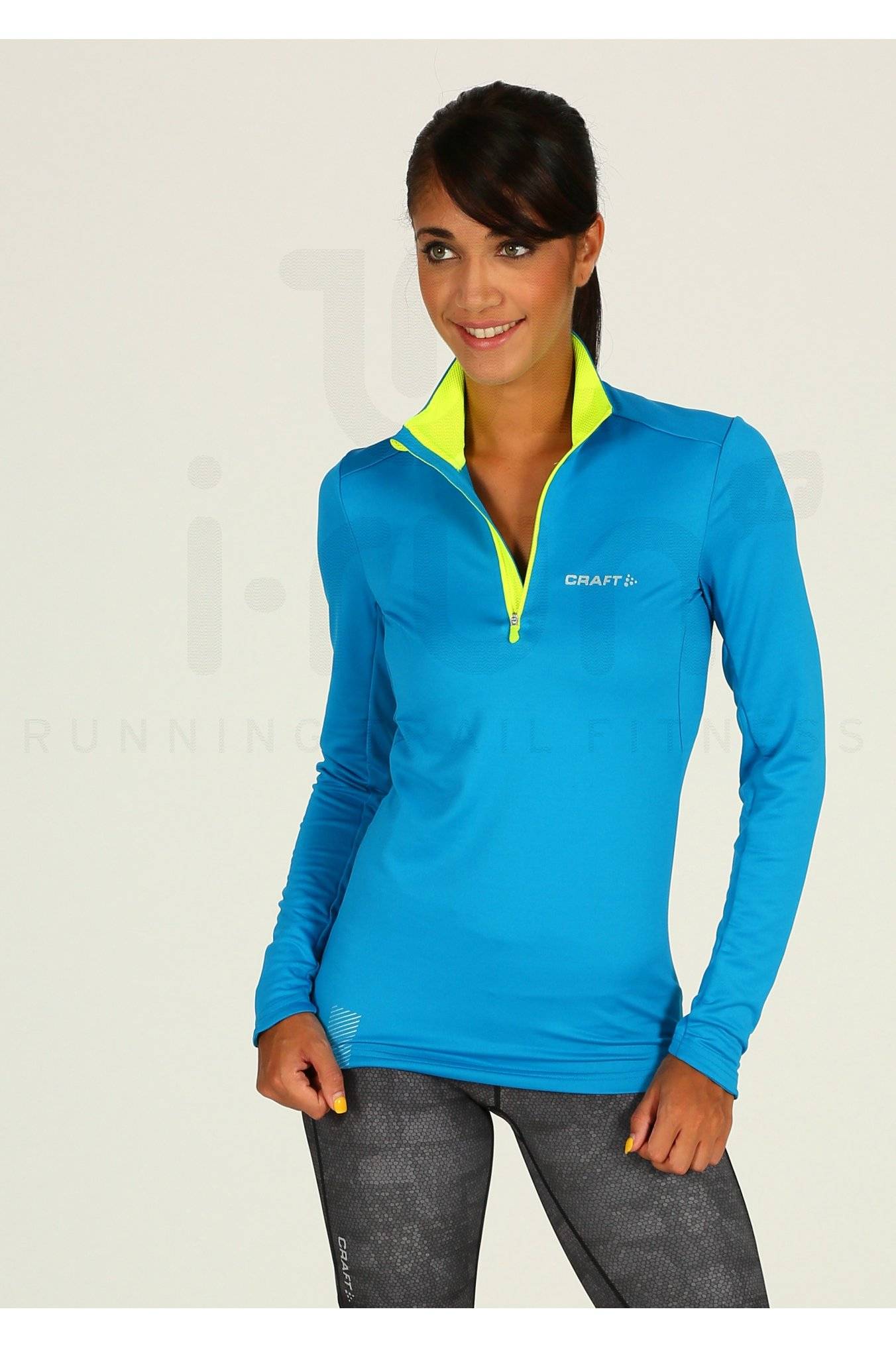 Idéal pour vous accompagner par temps frais, le maillot manches longues Craft Facile 1/2 Zip bleu et jaune fluo pour femme (Collection Automne/Hiver) offre un grand confort tout au long de votre séance de running.