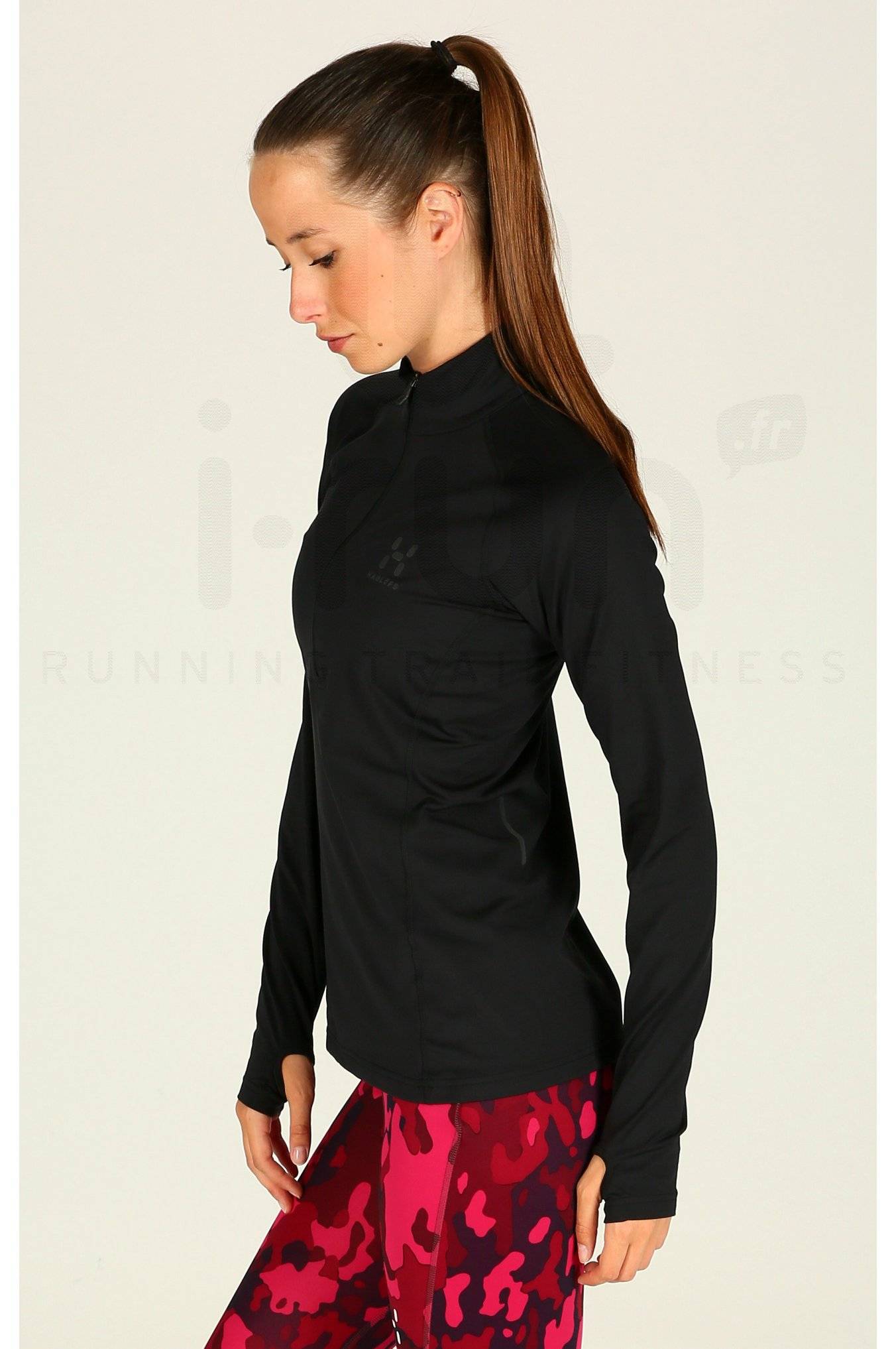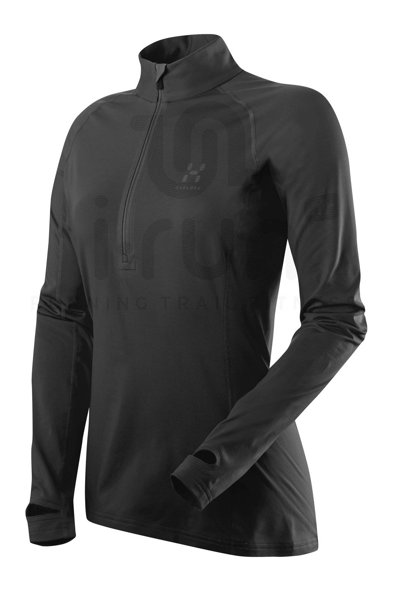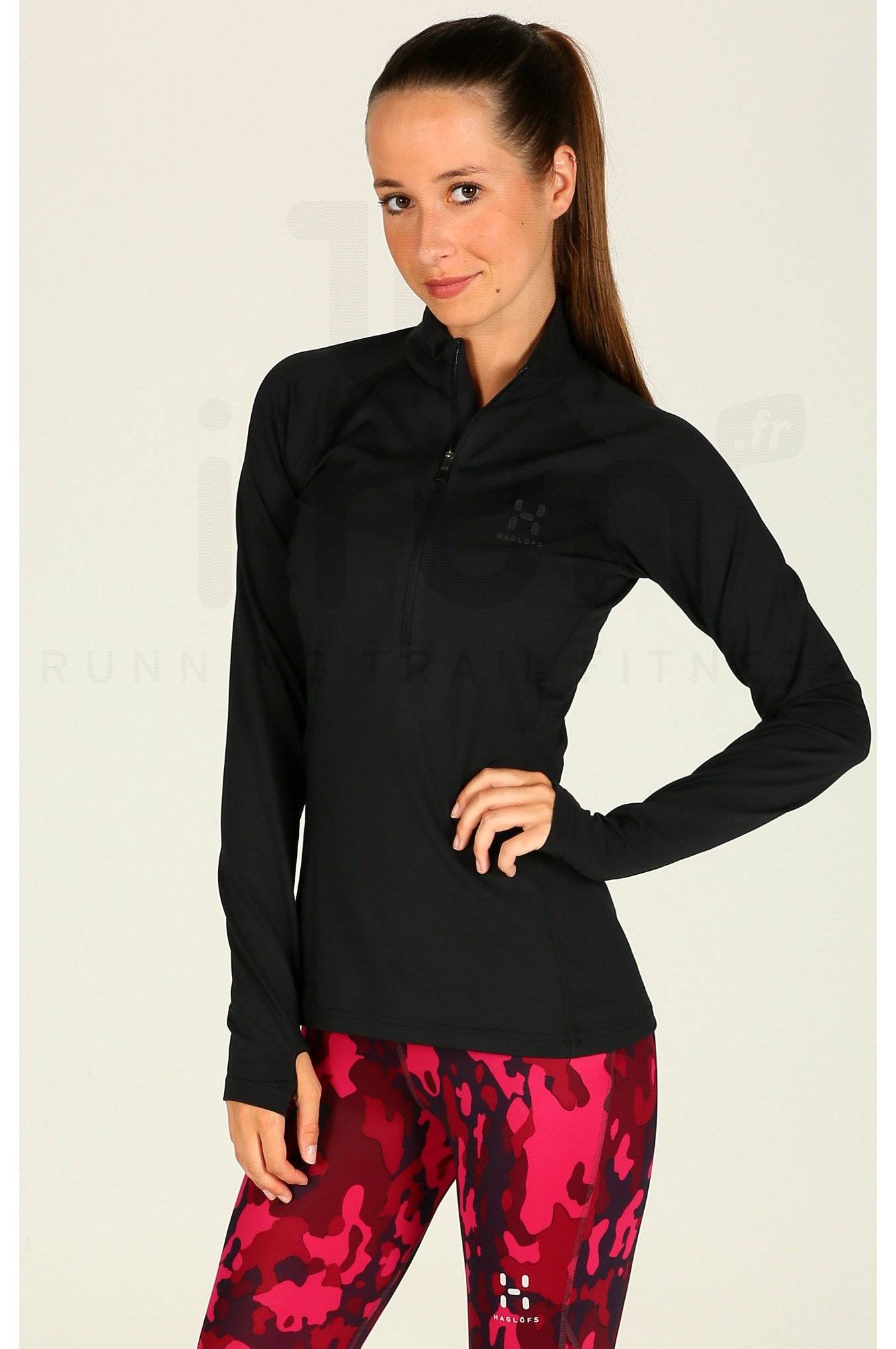 Partez sereine lors de vos séances de course à pied par temps frais en portant le maillot Haglöfs Intense Zip noir pour femme (Collection Automne/Hiver).