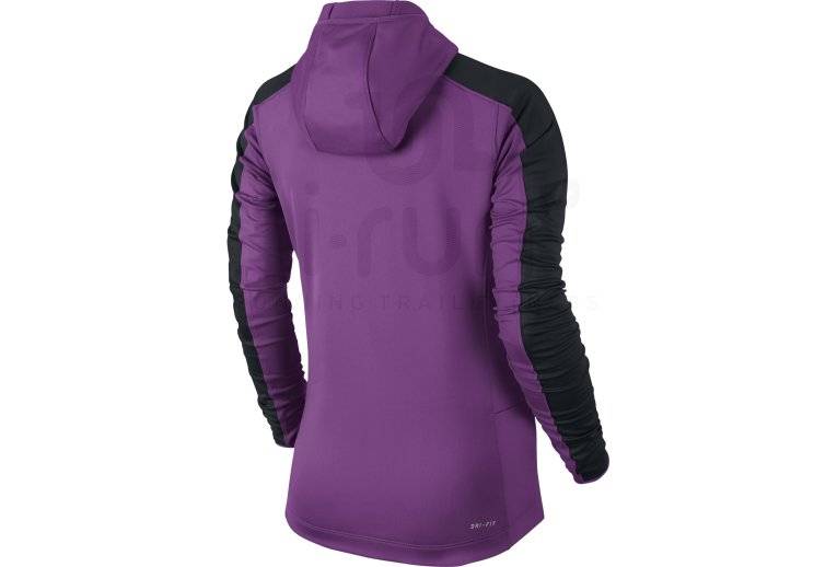 Pour lutter contre le froid lors de vos entraînements de running, optez pour le maillot manches longues Nike Thermal Hoody pourpre et noir pour femme (Collection Automne/Hiver).