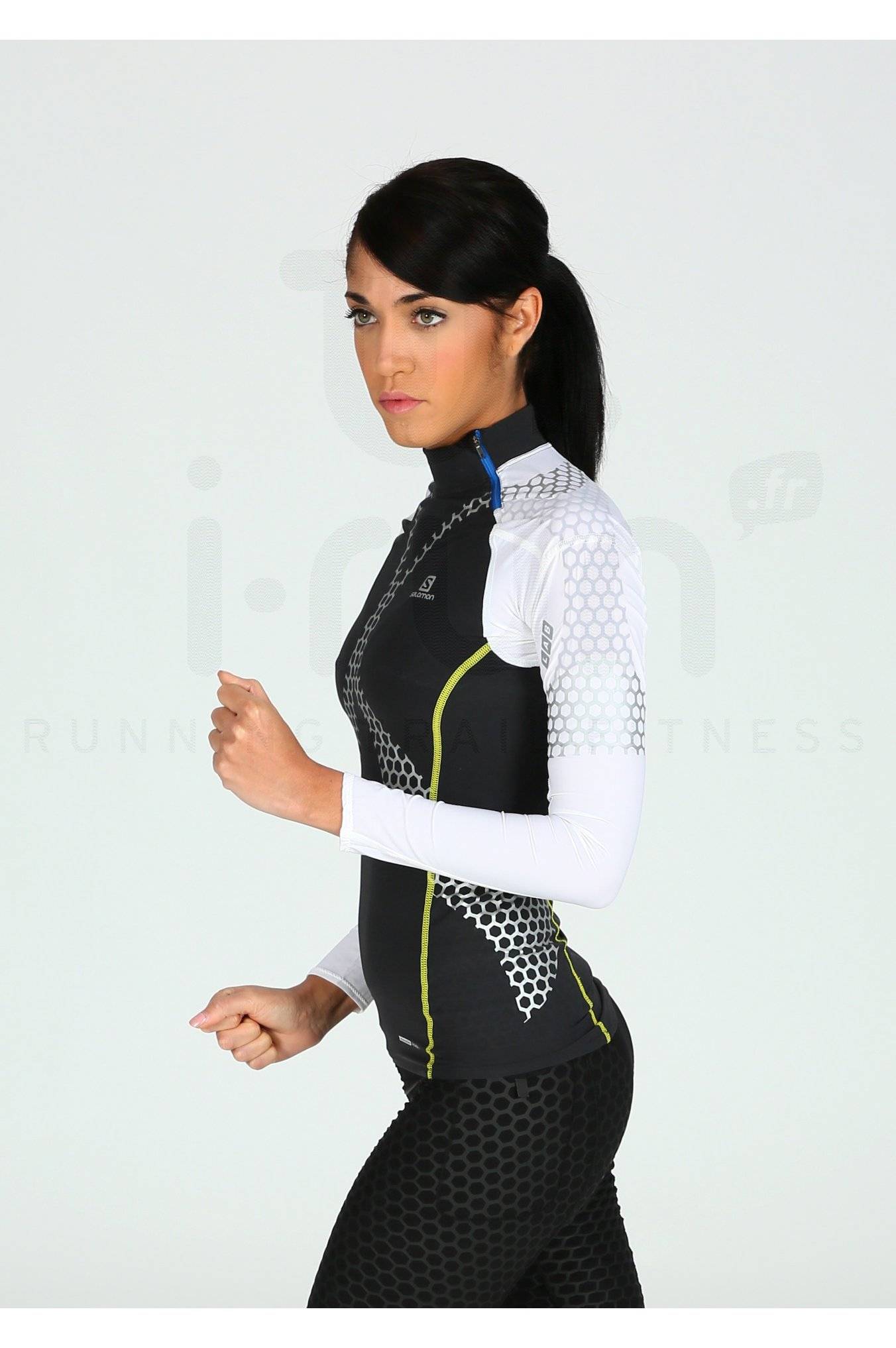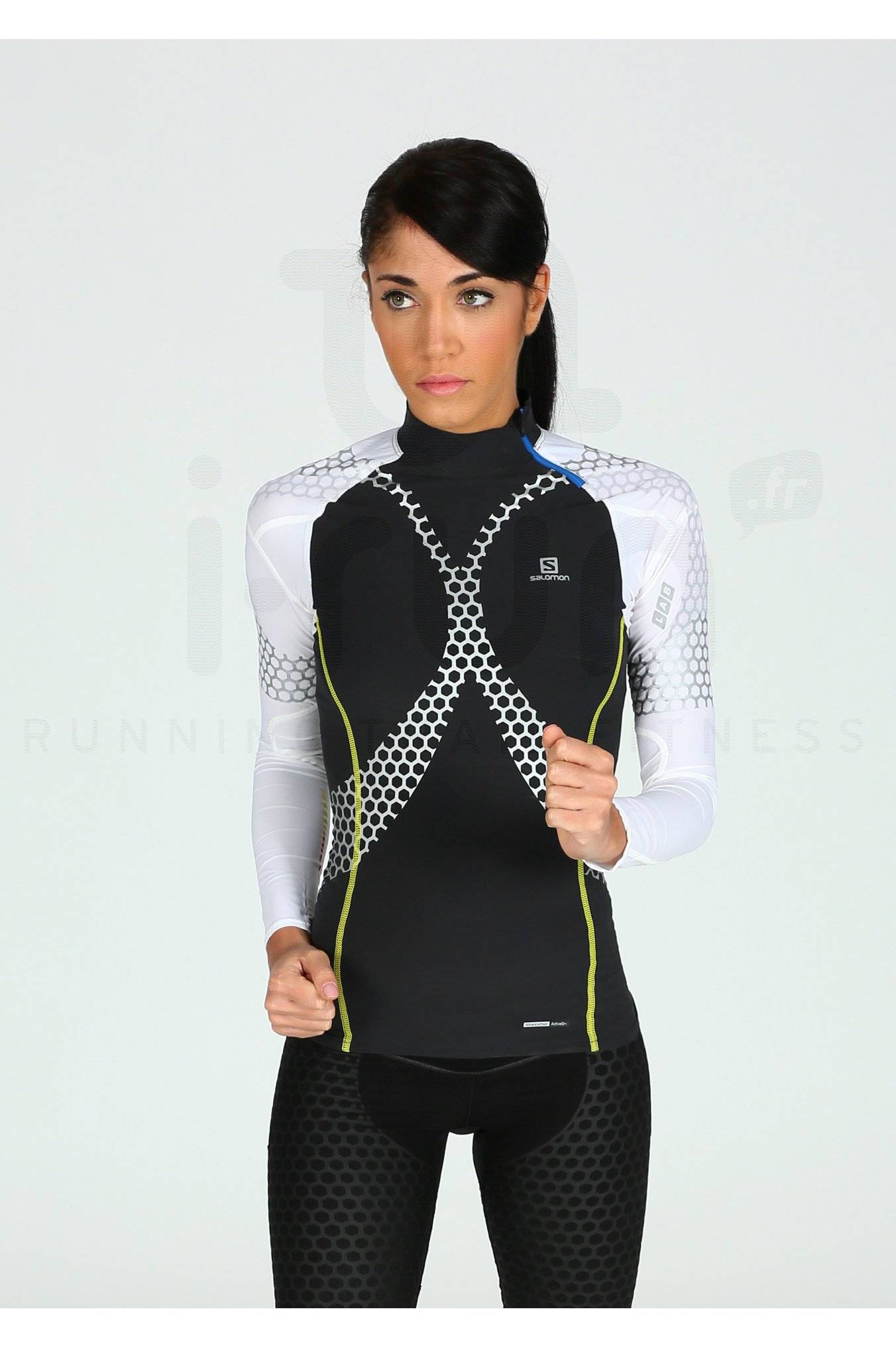 Le maillot manches longues Salomon Exo Jersey S-Lab Tech noir, blanc et jaune (Collection Automne/Hiver) pour femme apporte un excellent soutien musculaire et une amélioration de la posture lors de vos entraînements ou compétitions de course à pied ou de trail.