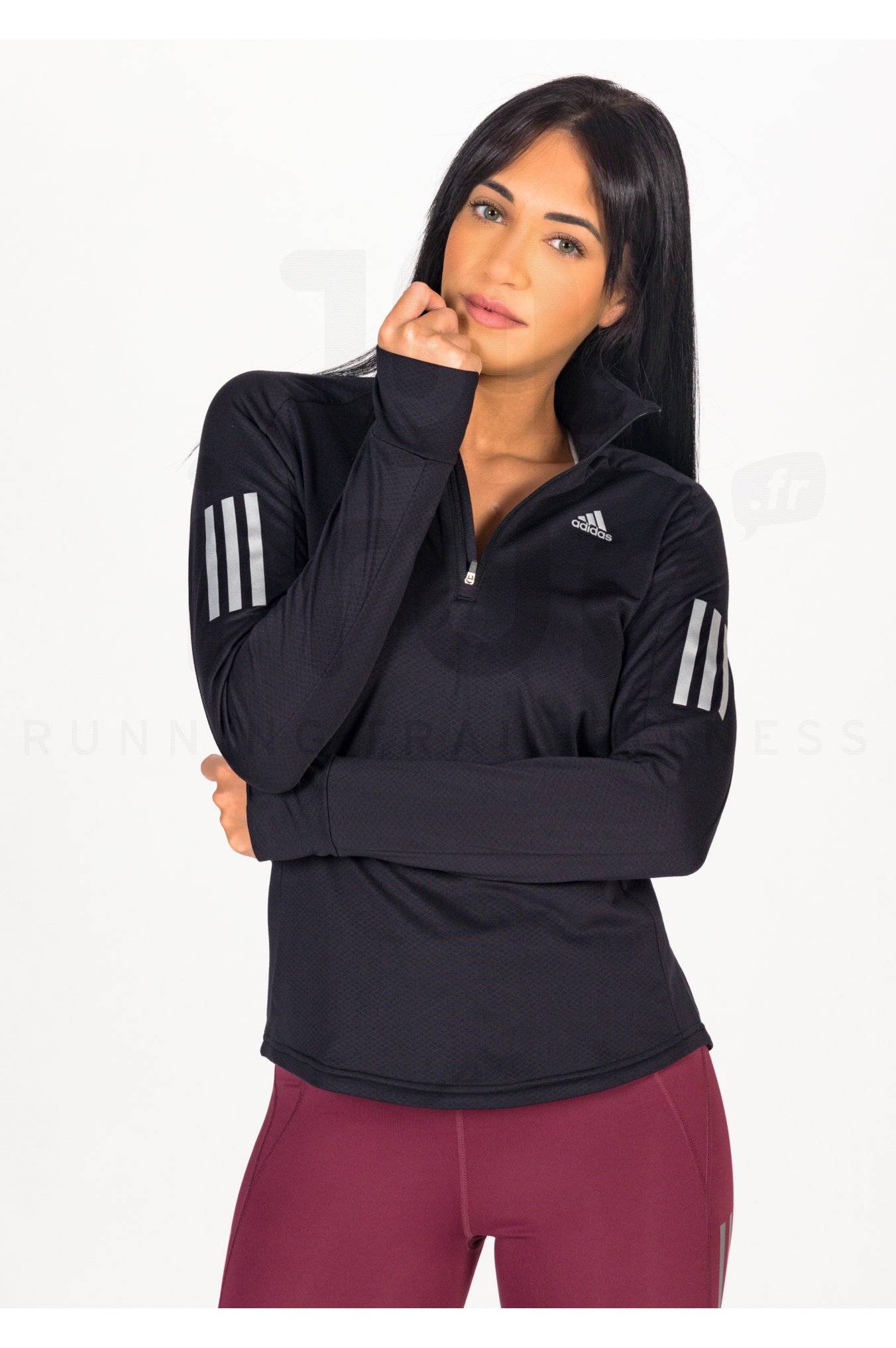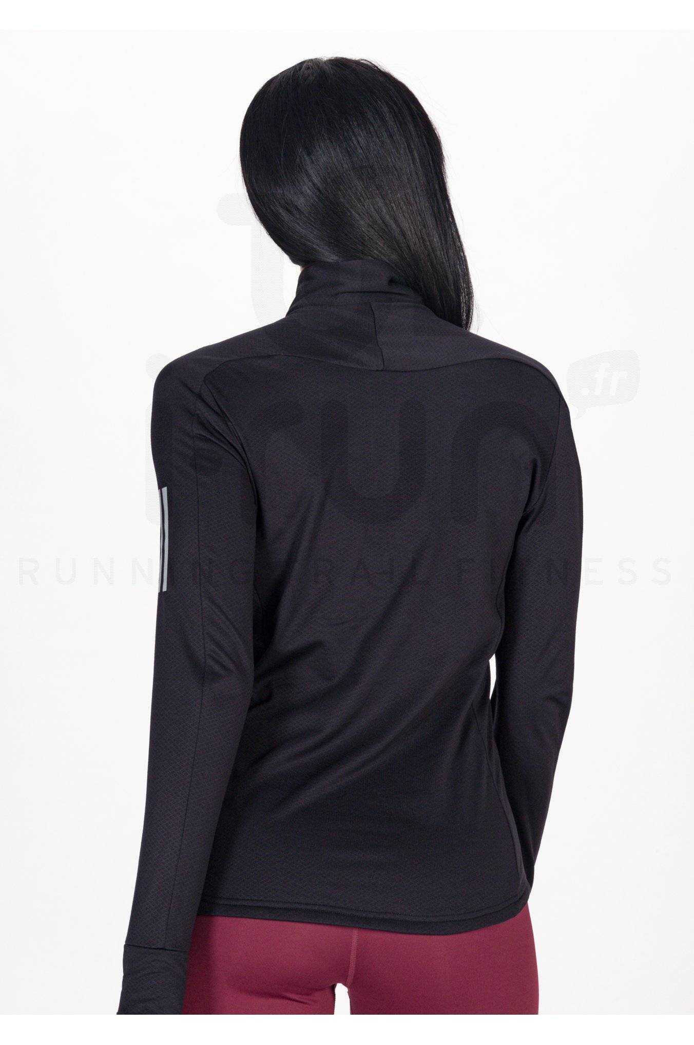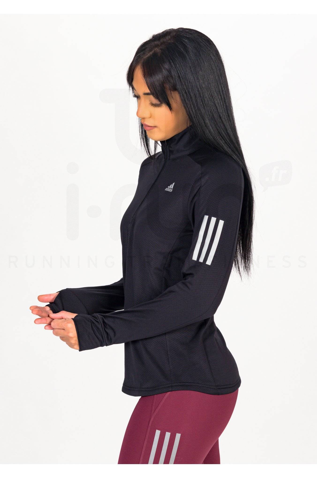 Le maillot manches longues adidas Own The Run Warm 1/2 Zip pour femme vous offre un confort maximal au cours de vos sessions de running par temps frais.