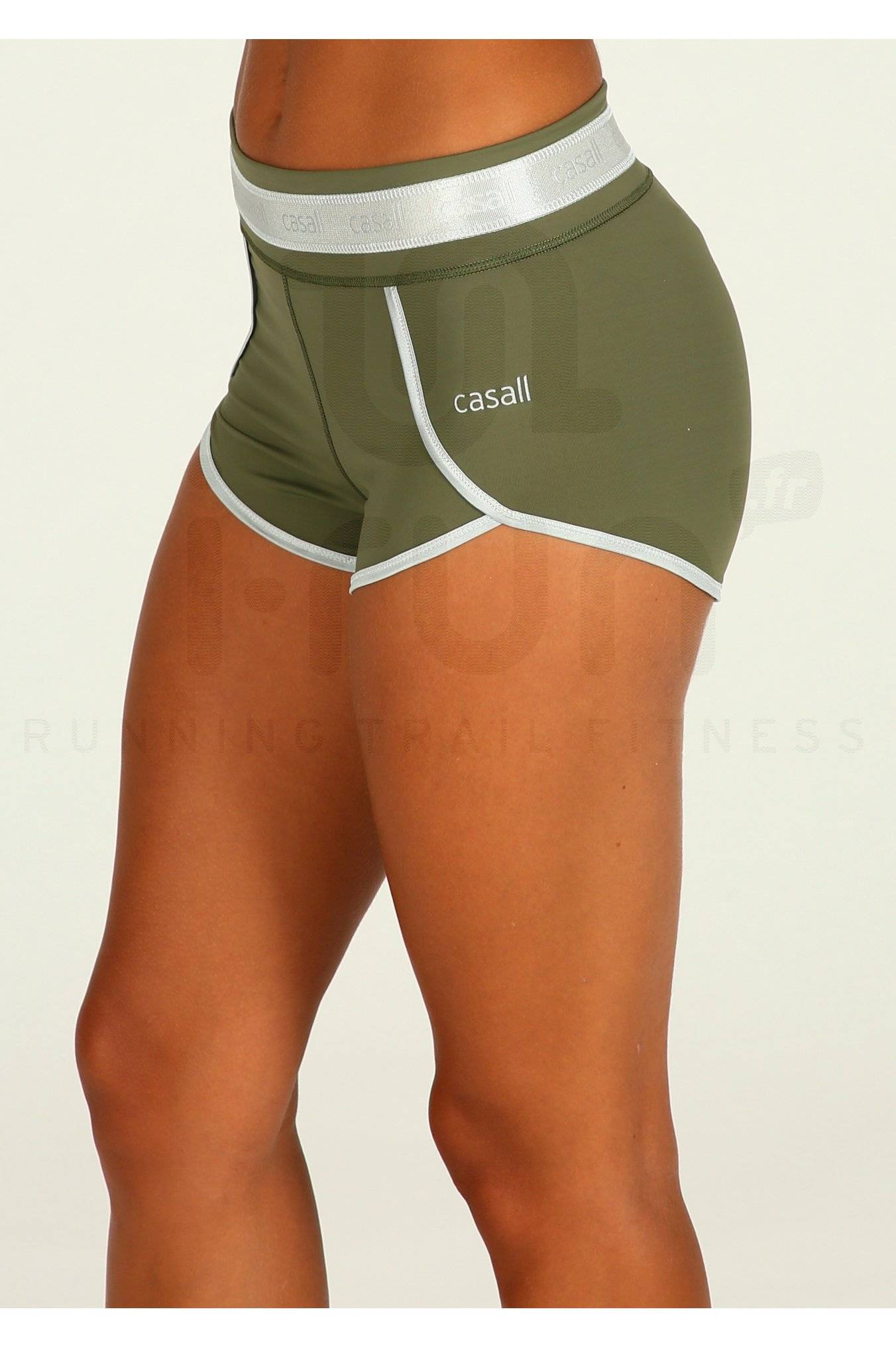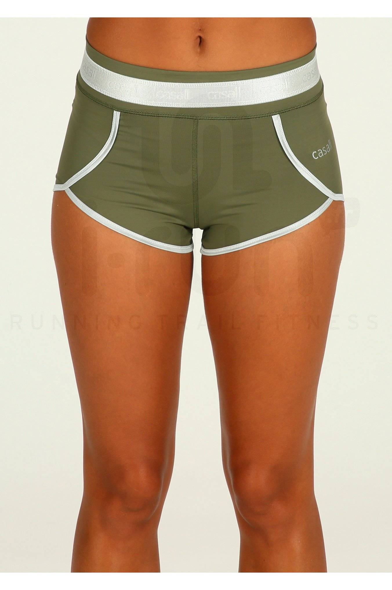 Imposez un style classe tout en étant sportive en portant le short Casall Silver Lining kaki et argent pour femme (Collection Printemps/Eté) lors de vos entraînements de running.