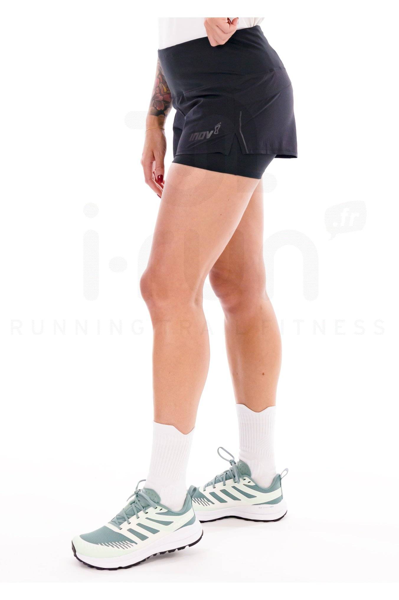 Le short 2 en 1 Inov-8 TrailFly Ultra 8 cm pour femme est l'allié de vos performances de running.