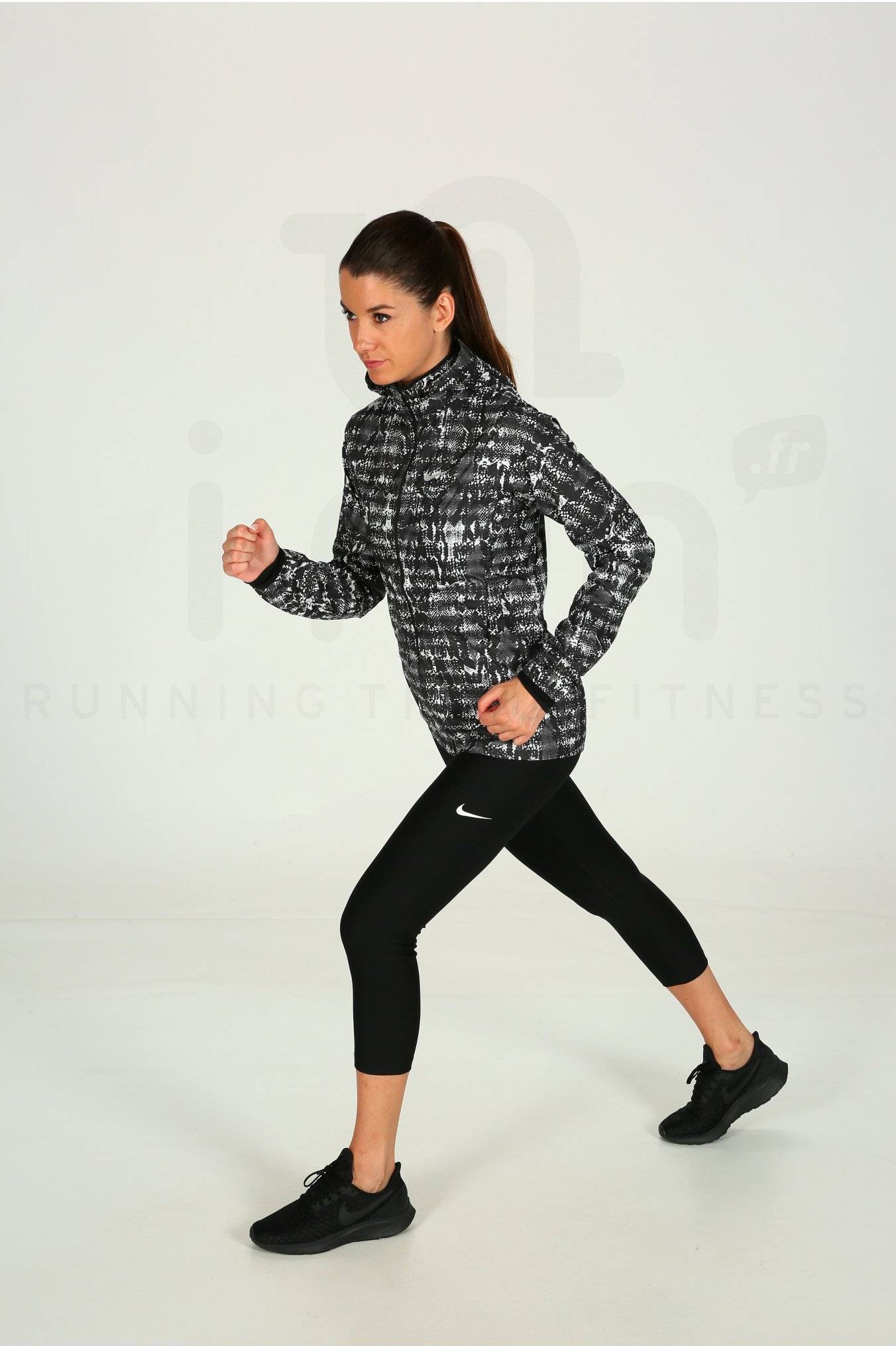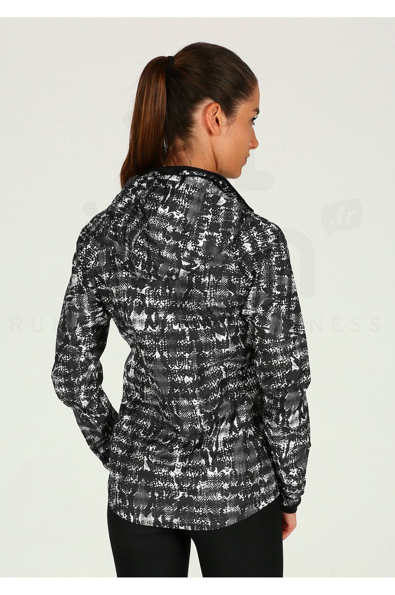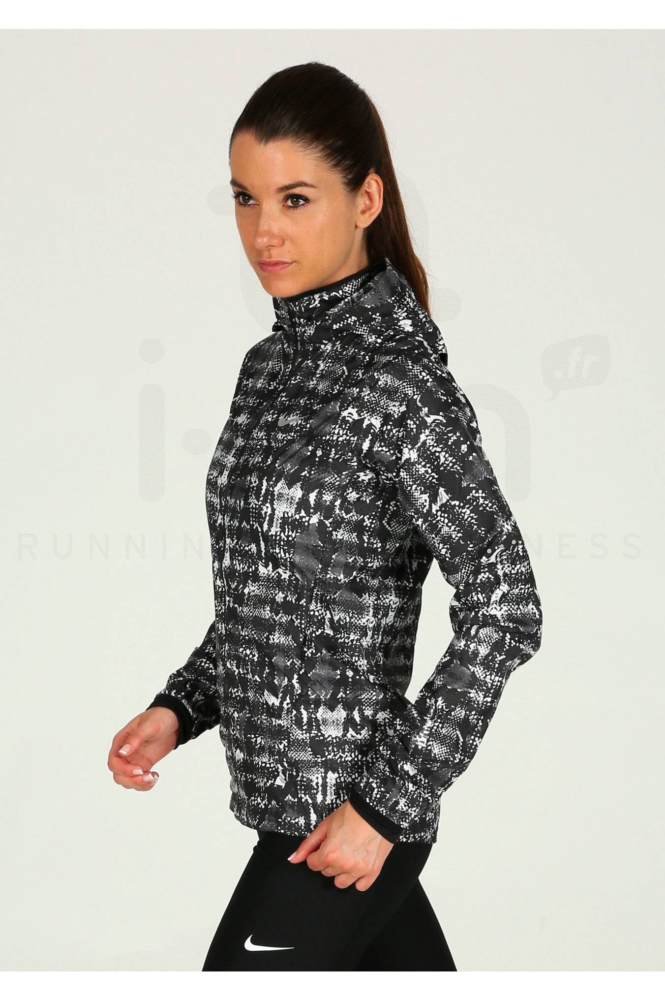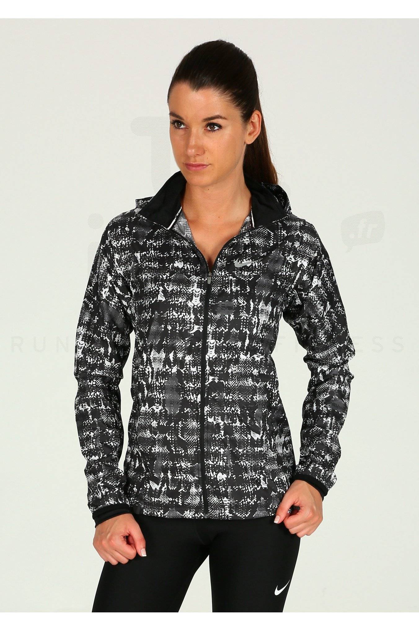 Protégez-vous contre les intempéries lors de votre course à pied avec la Veste Nike Vapor Viper imprimée noire et blanche pour femme (Collection Automne/Hiver).