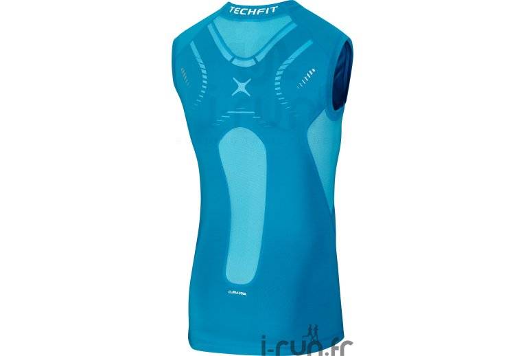 Le débardeur Adidas TechFit Preparation bleu pour homme améliore la puissance et l'endurance pendant l'effort.
