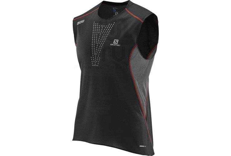 Pour ne plus avoir chaud lors de vos sessions de course à pied, optez pour le débardeur Salomon S-Lab Sense noir et rouge pour homme (Collection printemps/été).