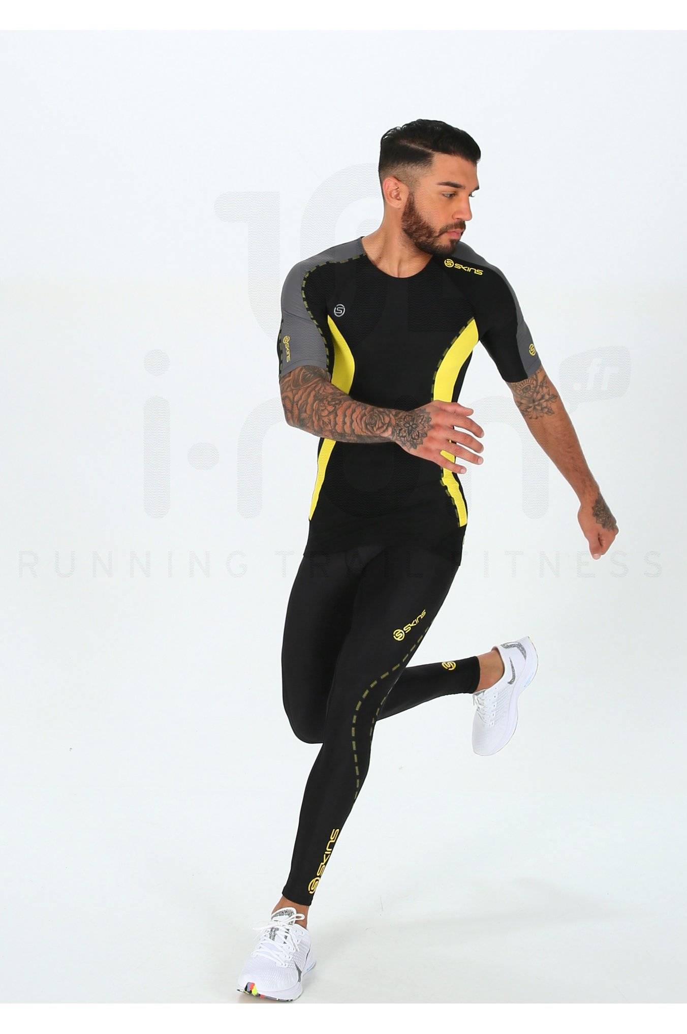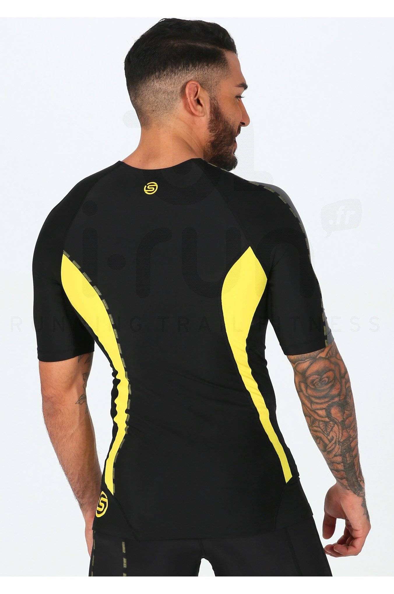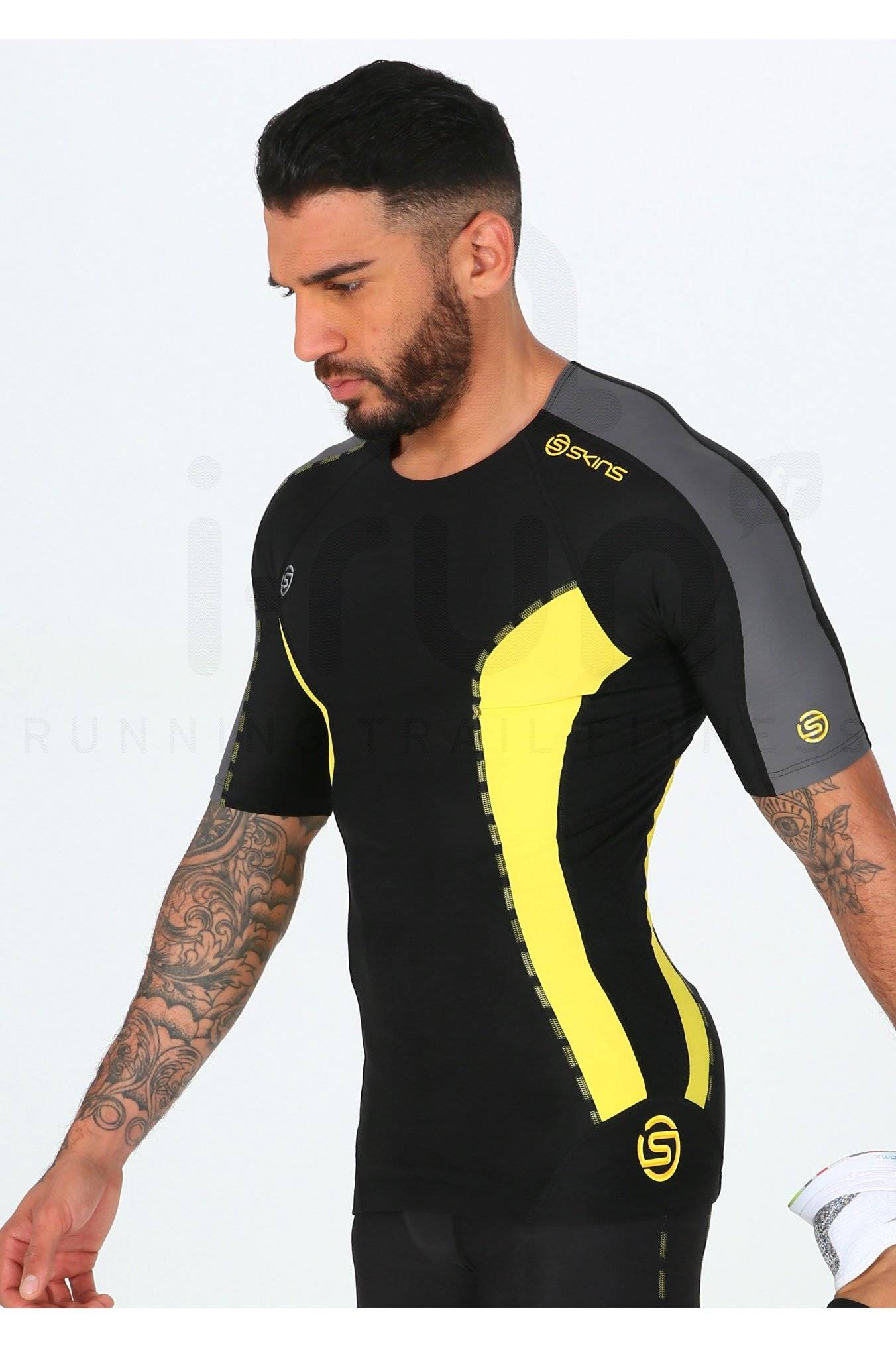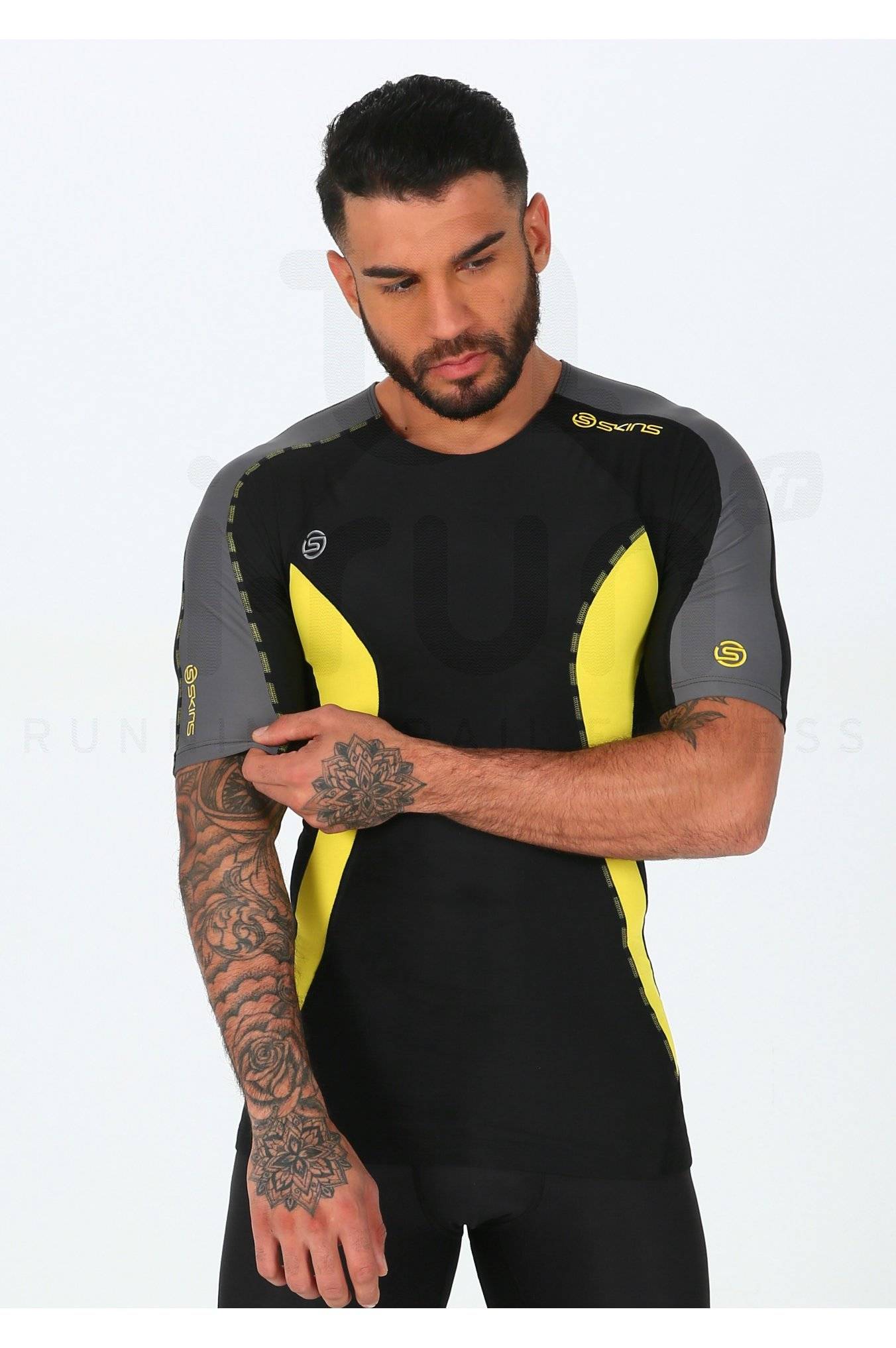 Par temps chaud, le soutien et le confort du tee-shirt Skins DNAmic noir, jaune et gris pour homme (Collection Automne/Hiver) vous permet d'améliorer vos performances lors de vos entraînements de running.