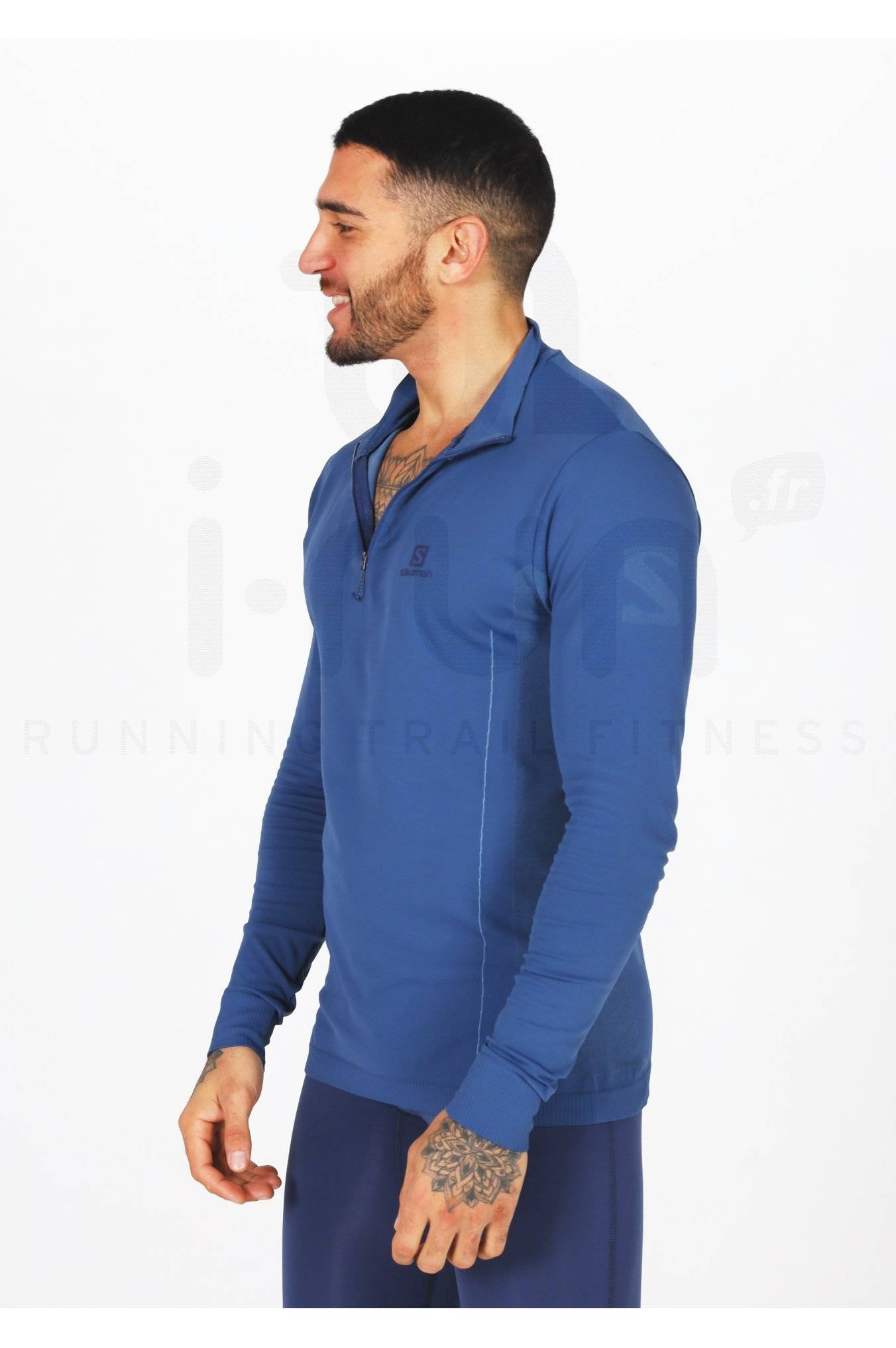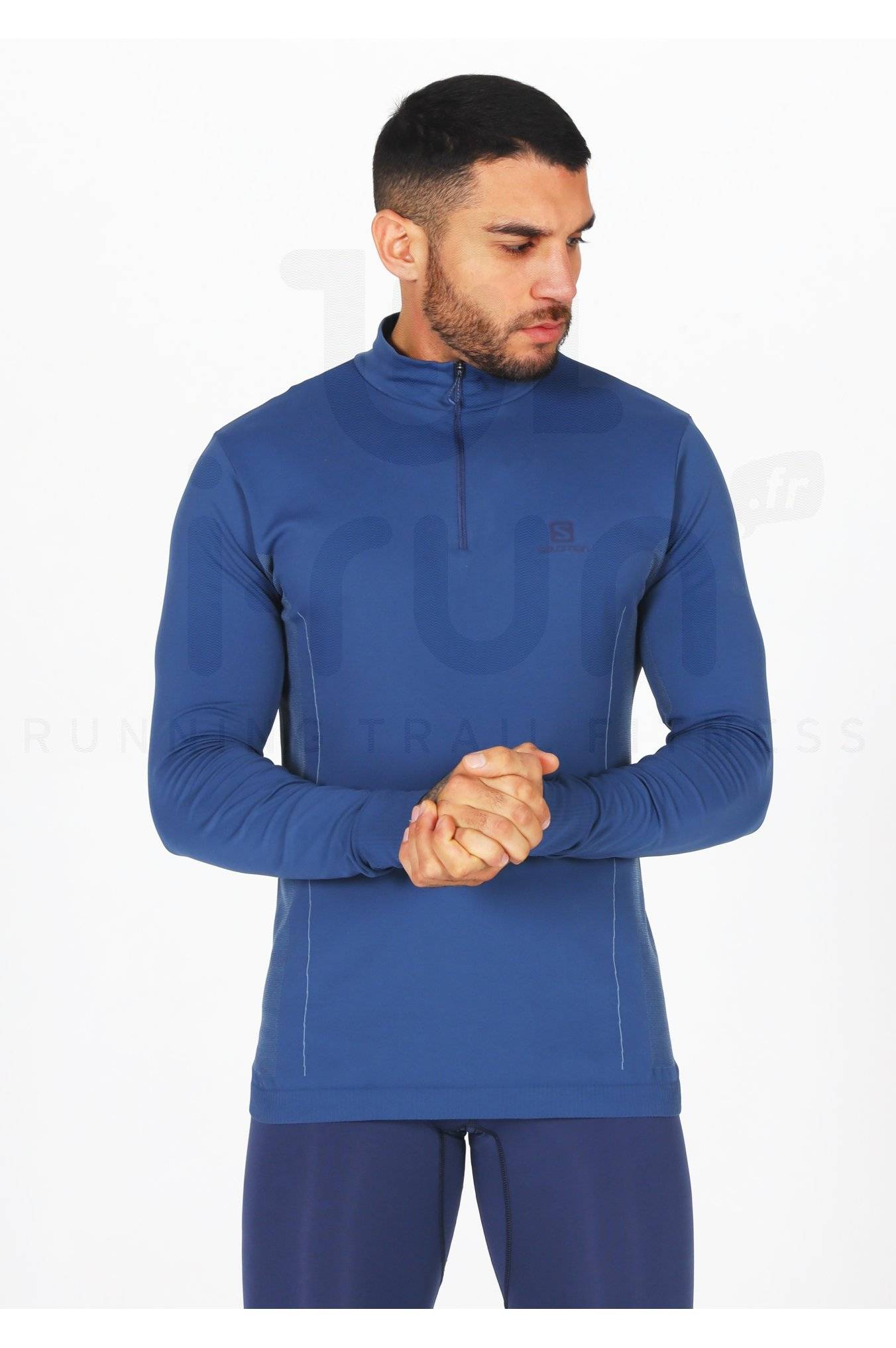Idéal en couche intermédiaire, le maillot manches longues Salomon Explore Seamless pour homme accompagne vos sessions de running et vos activités outdoor par temps frais.