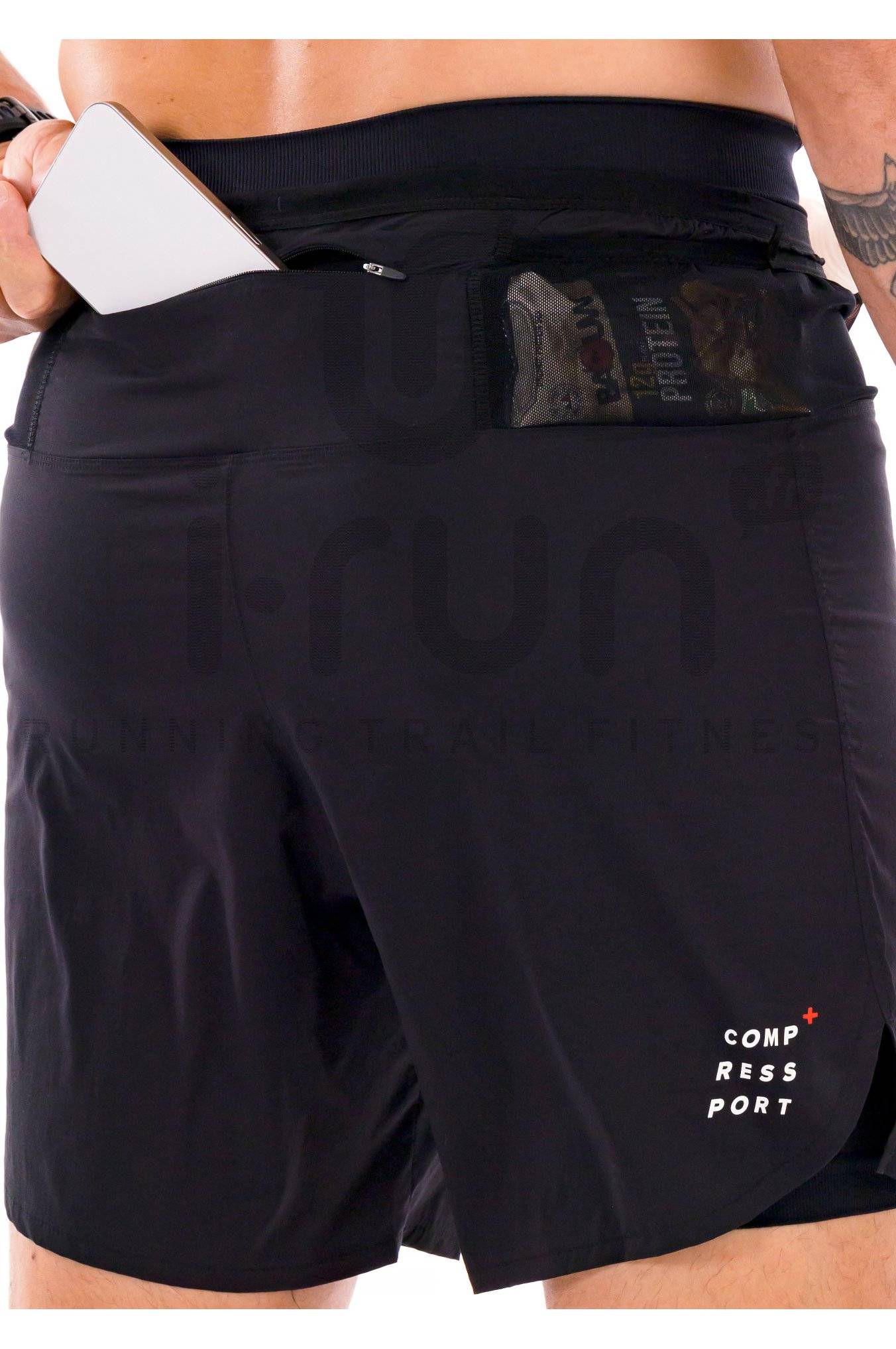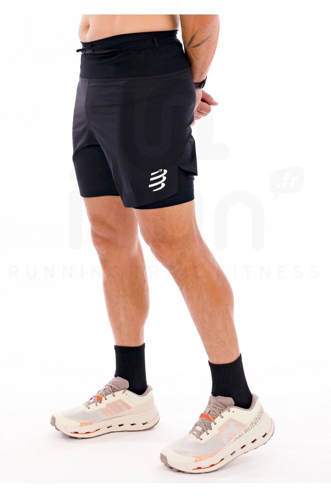 Points clés du short Compressport Trail Racing 2 en 1 14 cm