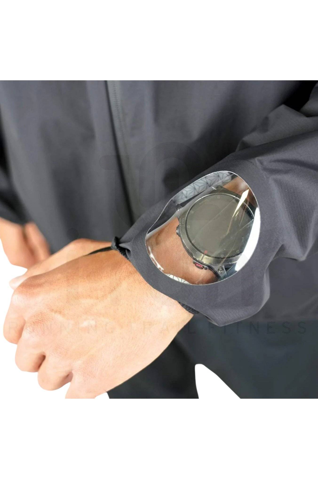 Vous disposez de deux poches latérales zippées ainsi que de rangements internes qui accueillent vos effets personnels. Des empiècements transparents aux poignets vous permettent de regarder votre montre.