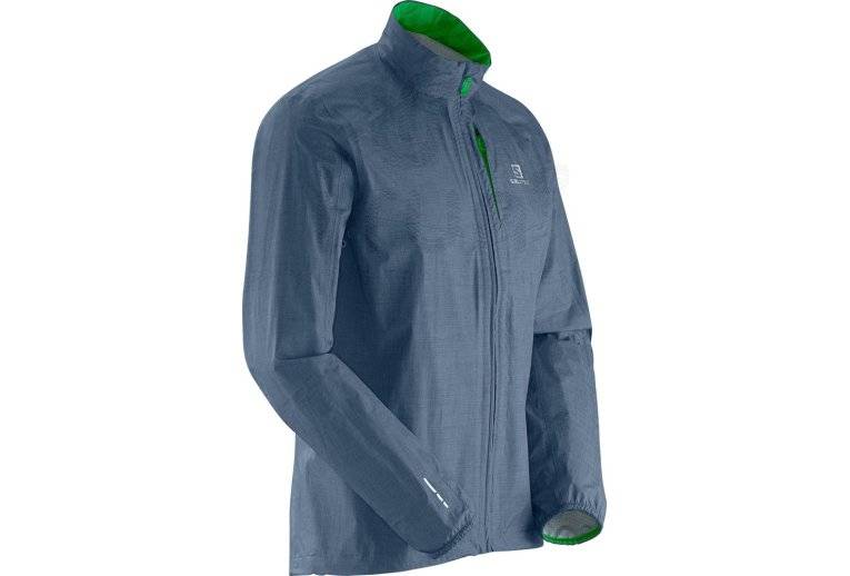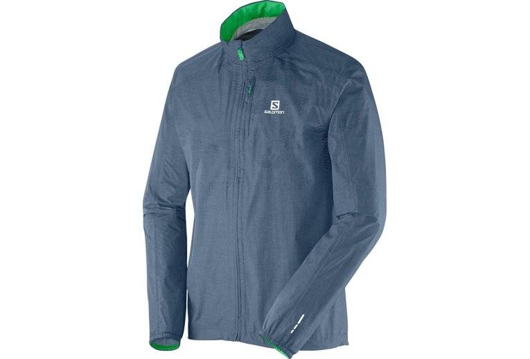 N'ayez plus peur d'affronter le vent et la pluie lors de vos sorties de course à pied avec le coupe-vent Salomon Park WP bleu gris et vert pour homme (Collection Autmne/Hiver).