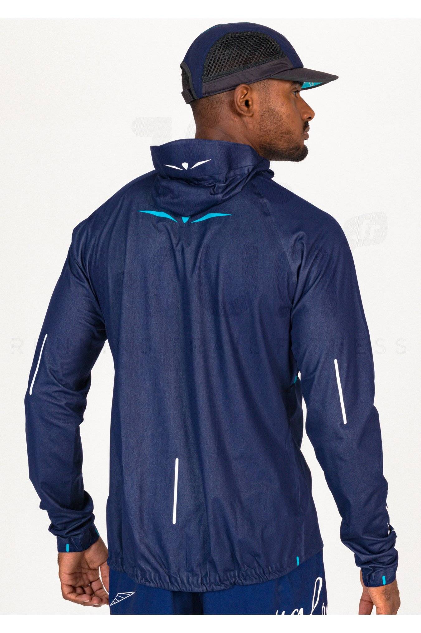 Sa matière imperméable vous donne la possibilité de vous exercer en restant au sec en toutes circonstances. La capuche avec visière intégrée apporte une protection supplémentaire tandis que le zip intégral vous laisse librement moduler l'aération. La taille et les poignets flexibles minimisent les infiltrations d'air et assurent un ajustement optimal pendant l'effort.