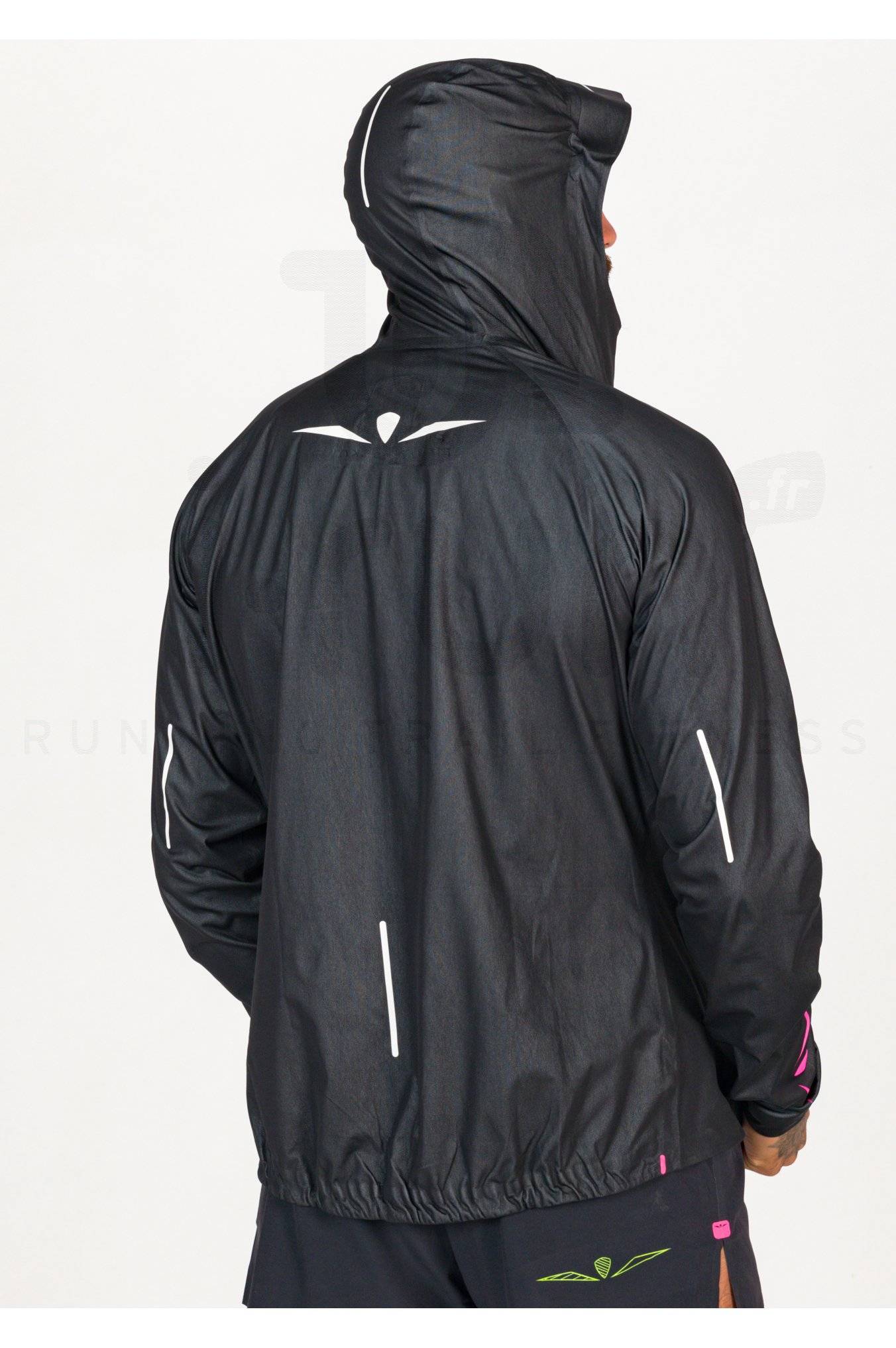Sa matière imperméable vous donne la possibilité de vous exercer en restant au sec en toutes circonstances. La capuche avec visière intégrée apporte une protection supplémentaire tandis que le zip intégral vous laisse librement moduler l'aération. La taille et les poignets flexibles minimisent les infiltrations d'air et assurent un ajustement optimal pendant l'effort.