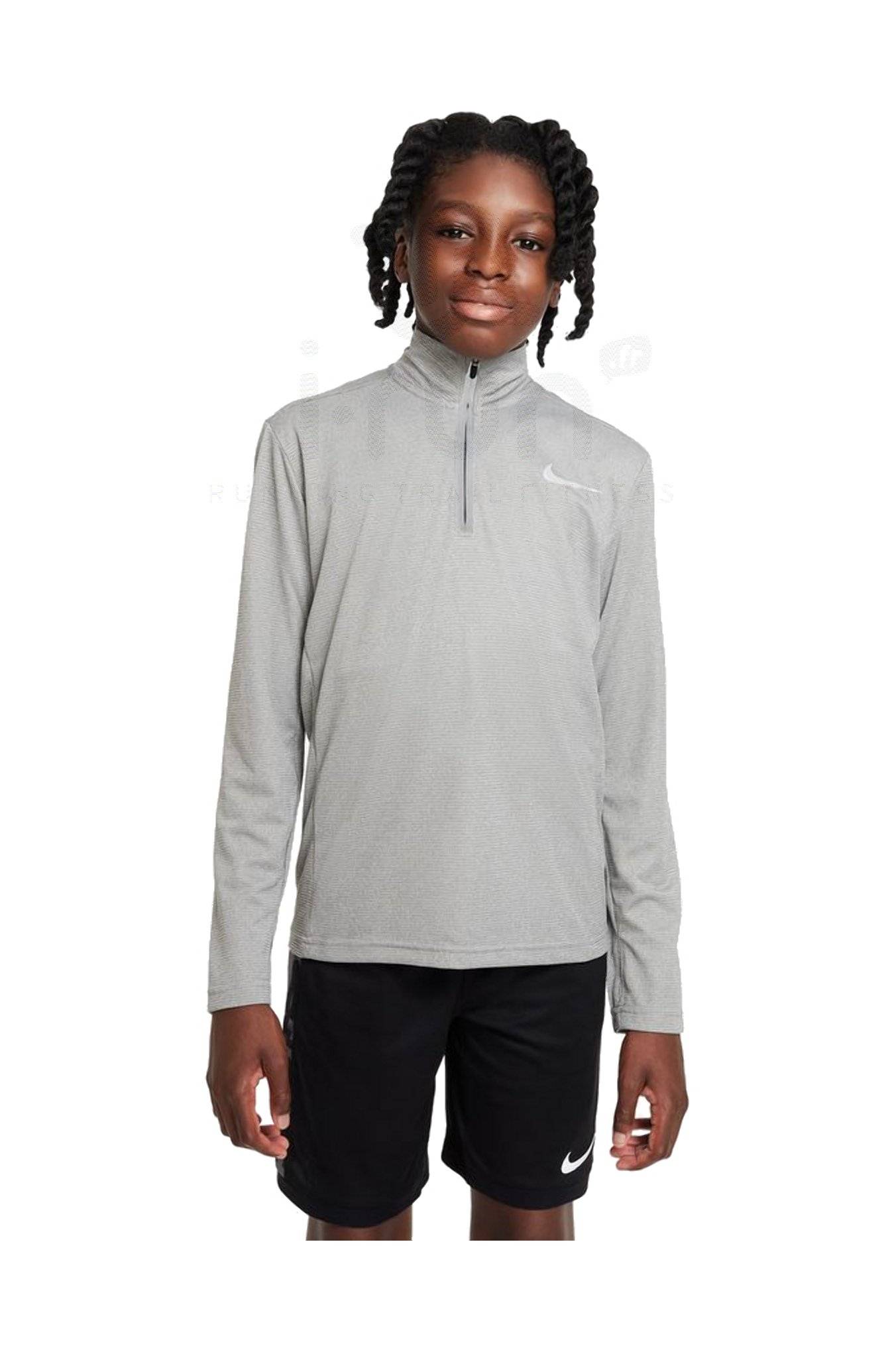 Le maillot manches longues Nike Poly+ accompagne votre garçon dans ses pratiques sportives par temps froid.